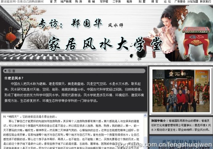 腾讯房产家居风水大学堂专访郑国华(转载)